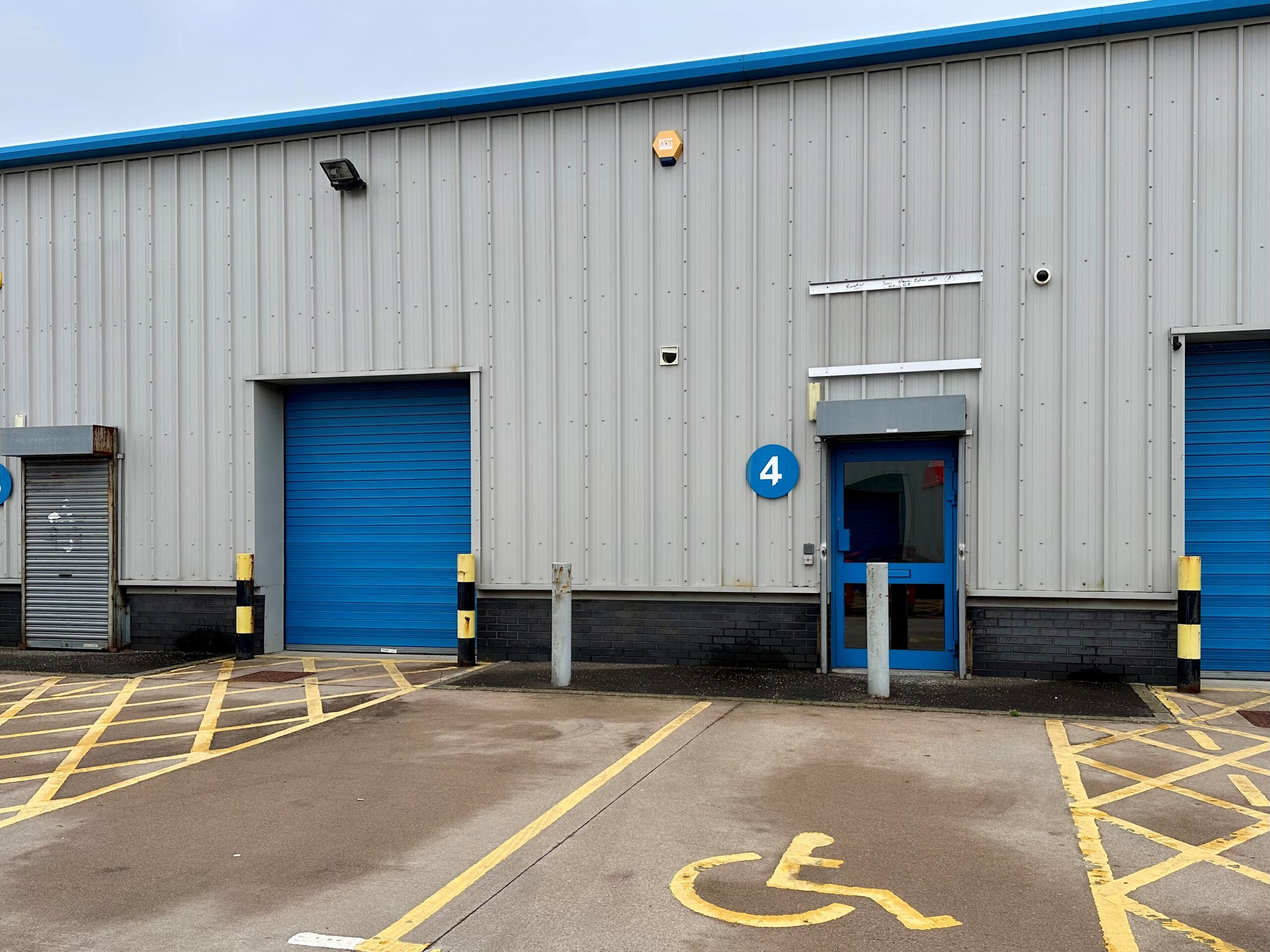 Steel portal frame with minimum 4.5m clear height and fully insulated profiled metal sheeting to external walls and roof.